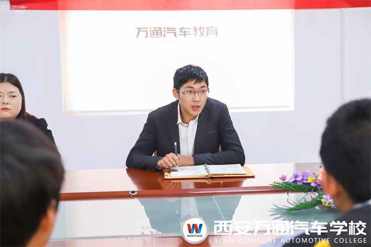 教務處梁主任從我校的教師團隊、學生培養(yǎng)計劃、校園生活管理等方面進行了講解。他指出:在西安萬通同學們要遵守校紀校規(guī),嚴格要求自己。同時建議大家加入社團組織,多參與校園活動,提升自己。